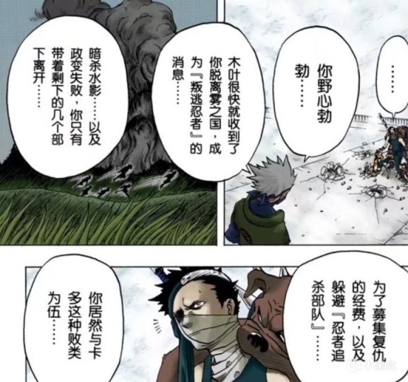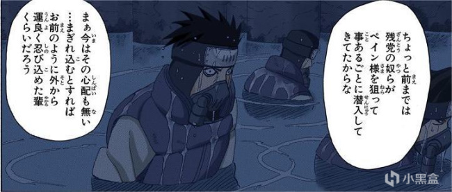 就比如画面中这个“穿”就是继承了山椒鱼半藏的遗志,并且试图袭击佩恩的“原雨隐村的残党”。