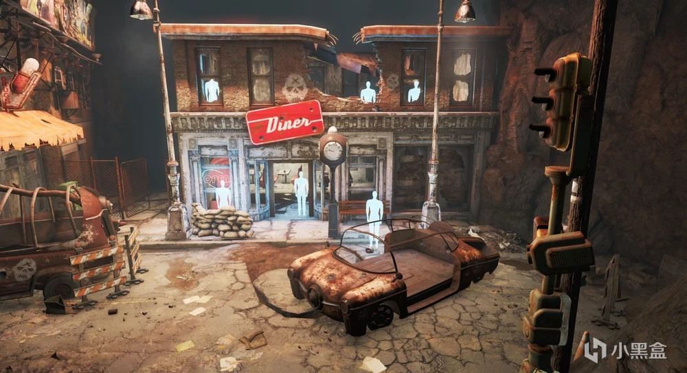 12号避难所,大门被故意留了漏洞,用以观测在微量辐射下人体的变化,居民最后全部变成了尸鬼,并在避难所里建立了专门收纳尸鬼的墓碑城。