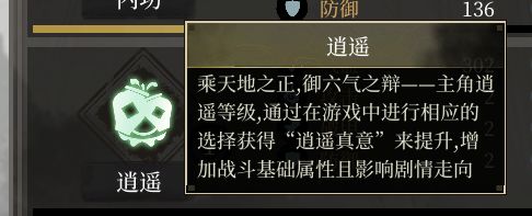 只有一个在Demo时期无法体验到的“逍遥真意”存有能影响剧情走向的说明。
