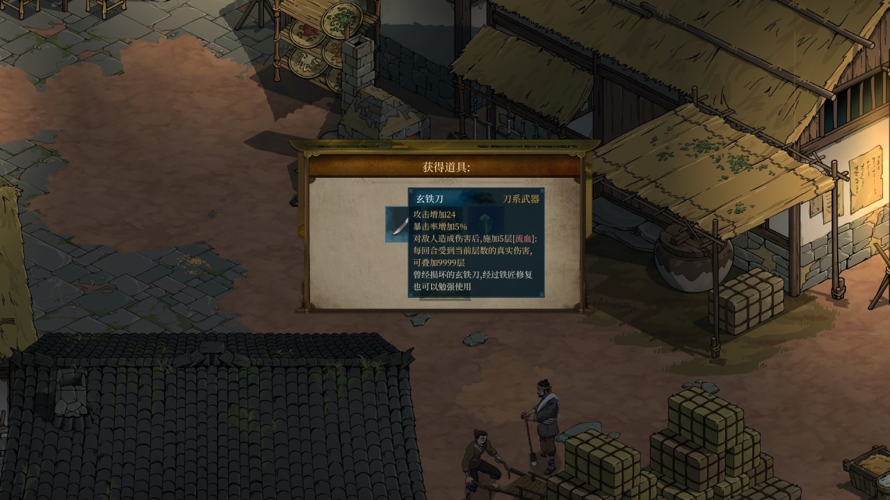 当你背包中携带这把刀去和村中的铁匠对话时,会发现能够触发使用玄铁矿修复这把刀的剧情。