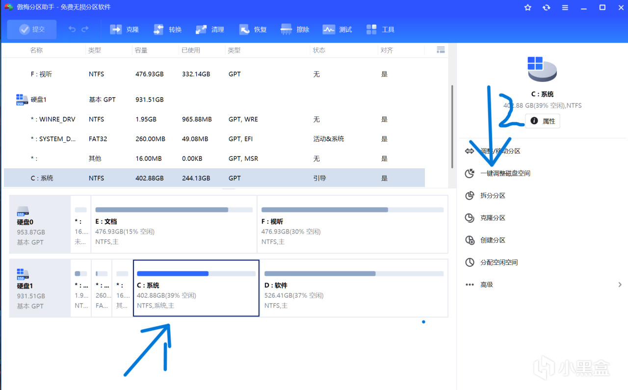 扩充c盘是使用傲梅分区助手和DiskGenius实现,原理是:从与c盘在同一块硬盘上的其他分区挪移存储空间至c盘,本文主要使用傲梅分区助手演示(DiskGenius使用方式和功能与傲梅分区助手相似)。