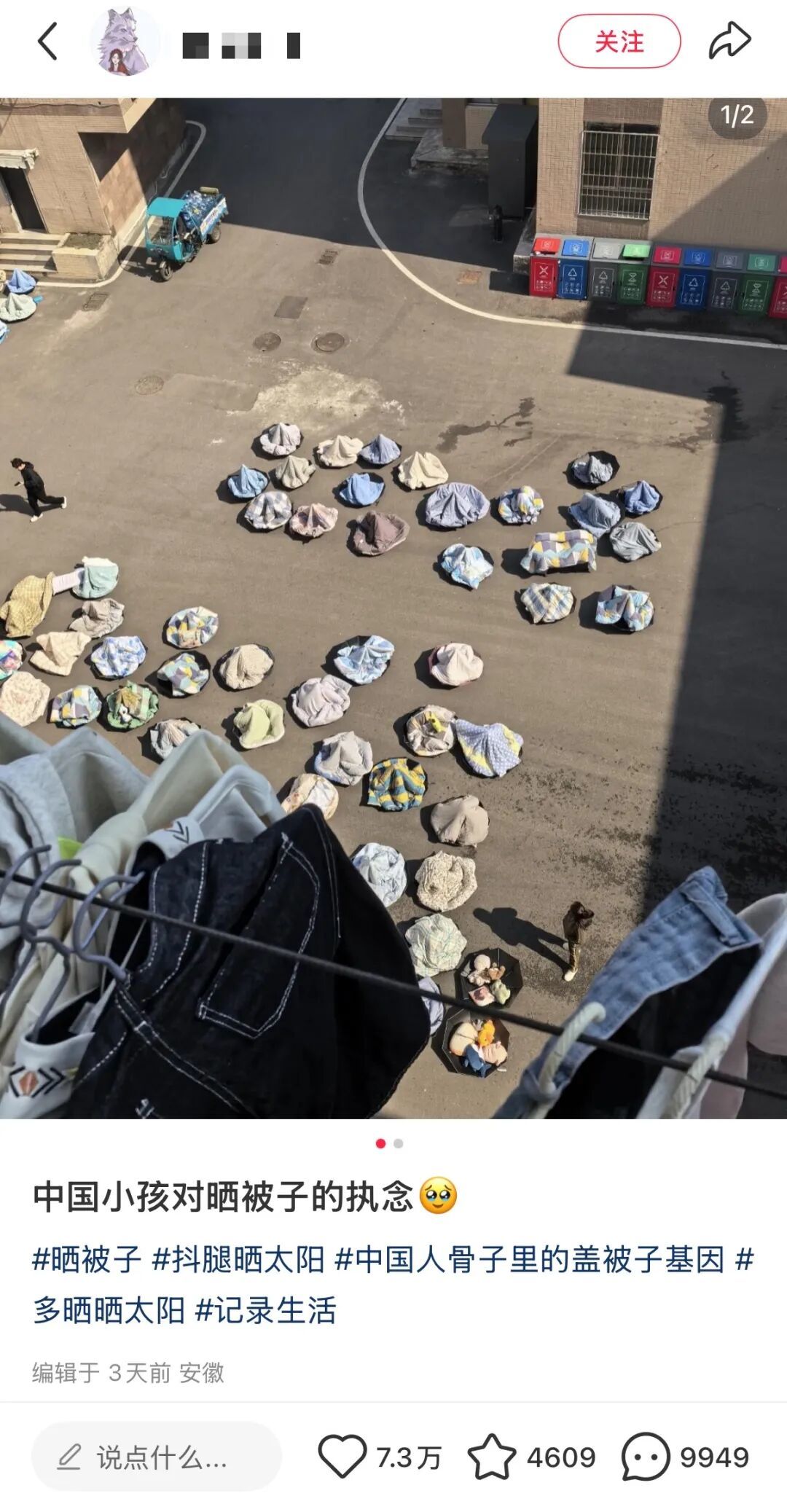 一到周末晴好天,大学校园的晒被大赛就拉开帷幕!有人抱着被子踩着早八铃声往楼下跑,抢占草坪旁的晾衣绳;