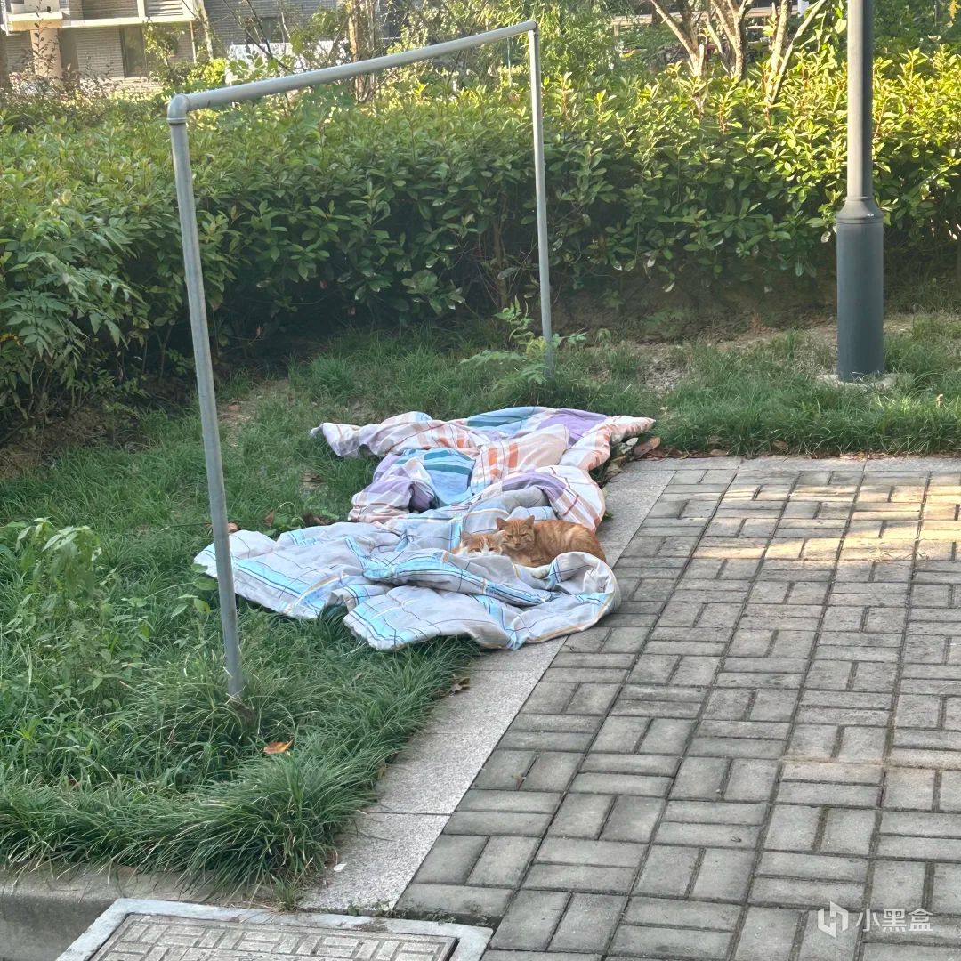 最逗的是,晒在草坪边的被子总被猫学姐和go学长 征用,蜷成毛茸茸的一团,朋友圈里全是 我的被子被校猫盖章认证的吐槽——毕竟谁能拒绝晒过太阳的暖被子呢?
