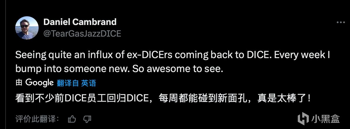 DICE《战地》系列核心开发团队的环境艺术家 Daniel Cambrand 于周四 在社交媒体上发文称,"看到相当多的前 DICE 开发者回到 DICE,每周都会遇到新回来的人,这太令人兴奋了。