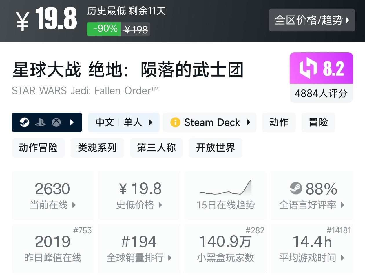 8.《星球大战 绝地:陨落的武士团》