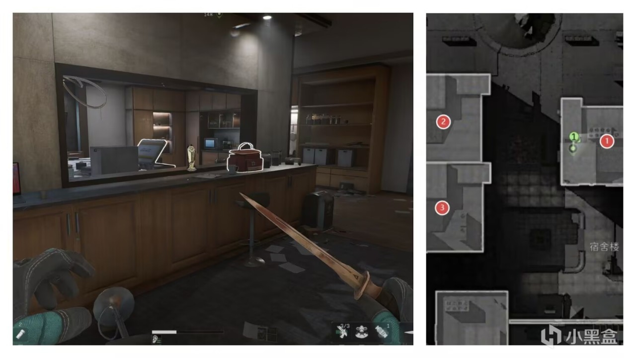 七、黑室航空箱房间旁走廊箱子上