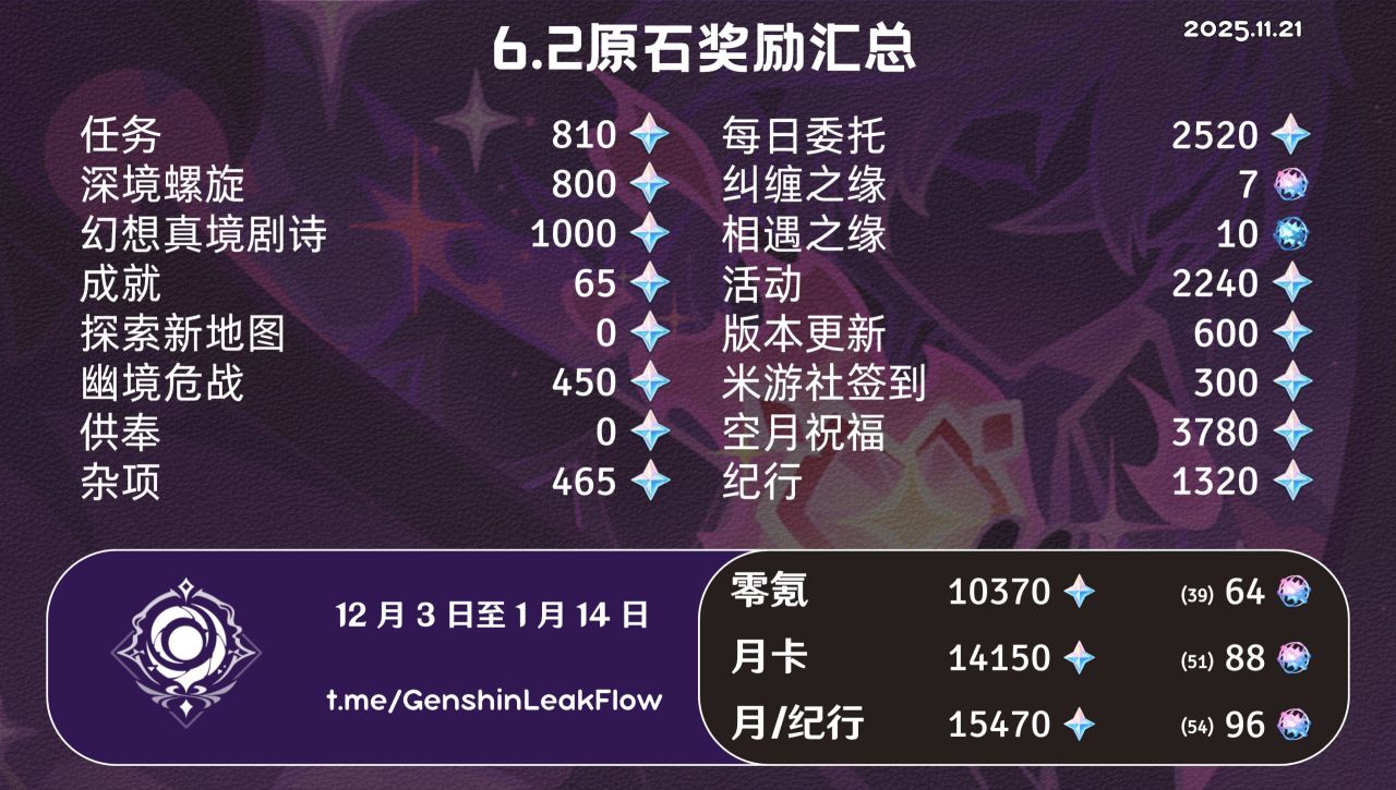 6.2测试服原石统计已出,时间:12月3日至1月14日