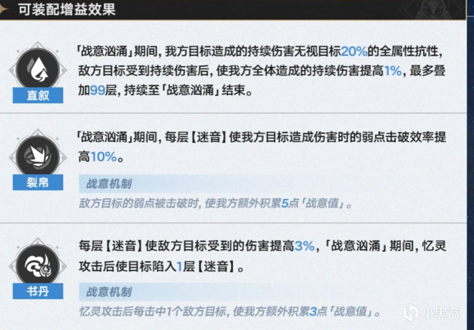 再看虛構三buff兄弟,也就比較簡單明瞭,分別是給dot、擊破和記憶三大戰艦喫肉的,