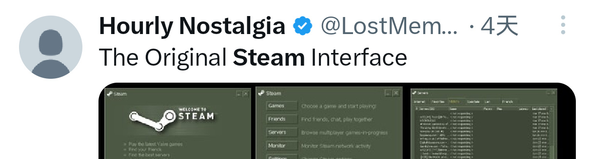 在推特上某位玩家分享最早的Steam界面是什么样子