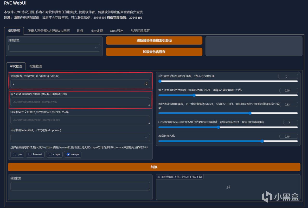 首先你需要把《雨下一整晚》的人声和背景音分离(和前面一样的),然后在第二个红框里输入人声文件的路径(注意路径到文件,不是到文件夹)。