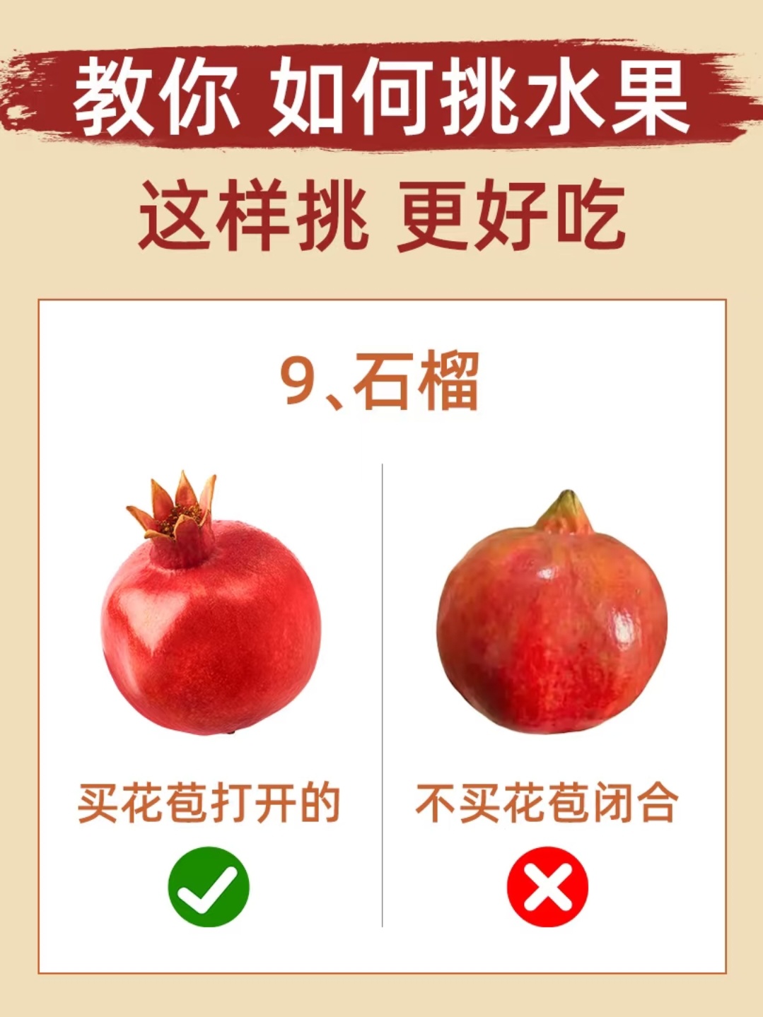 石榴:花苞打开的更熟,闭合的还没长透,籽又硬又酸;