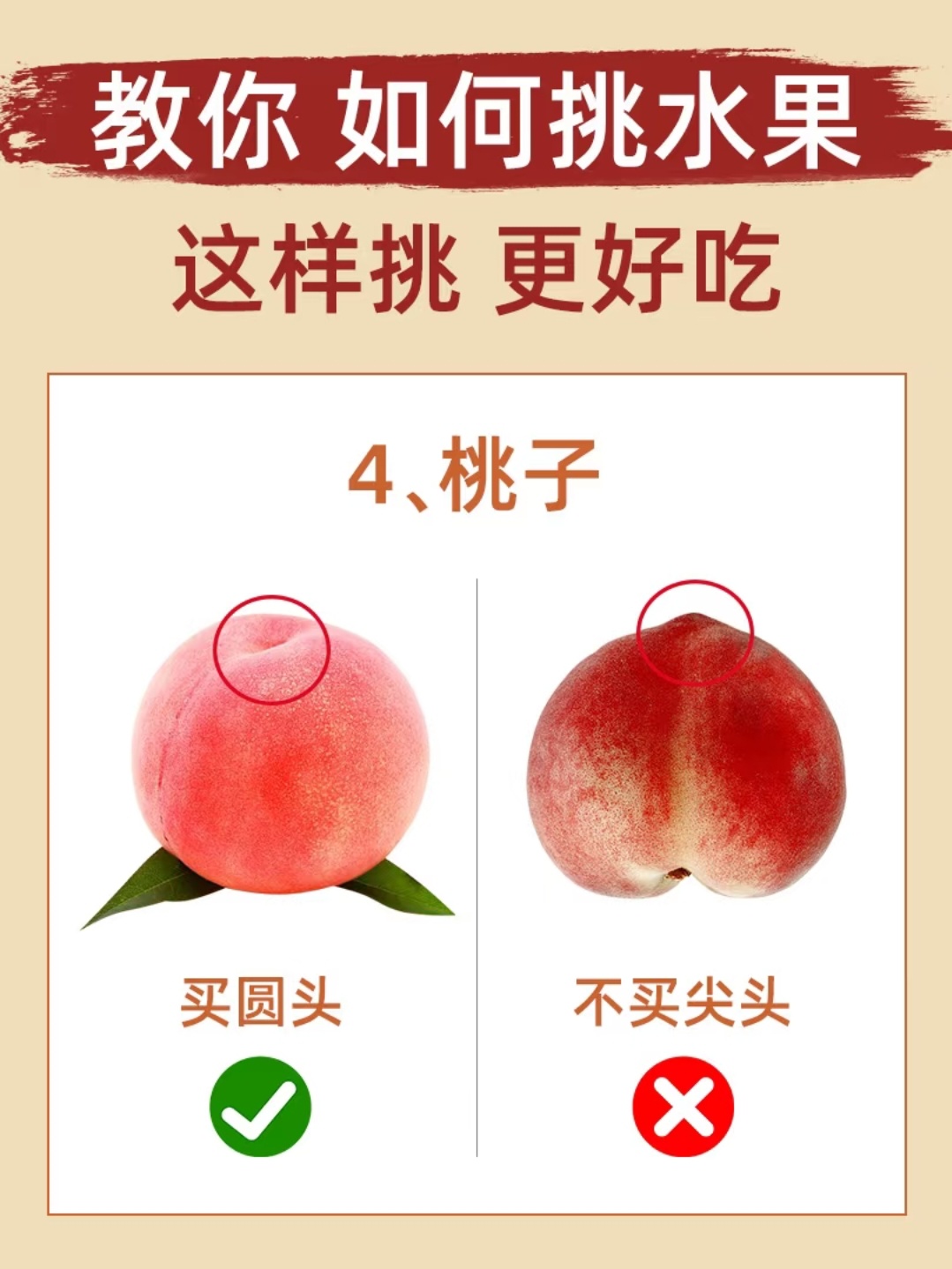 🍑桃子:买圆头的(软甜多汁),尖头的要么硬邦邦要么涩;