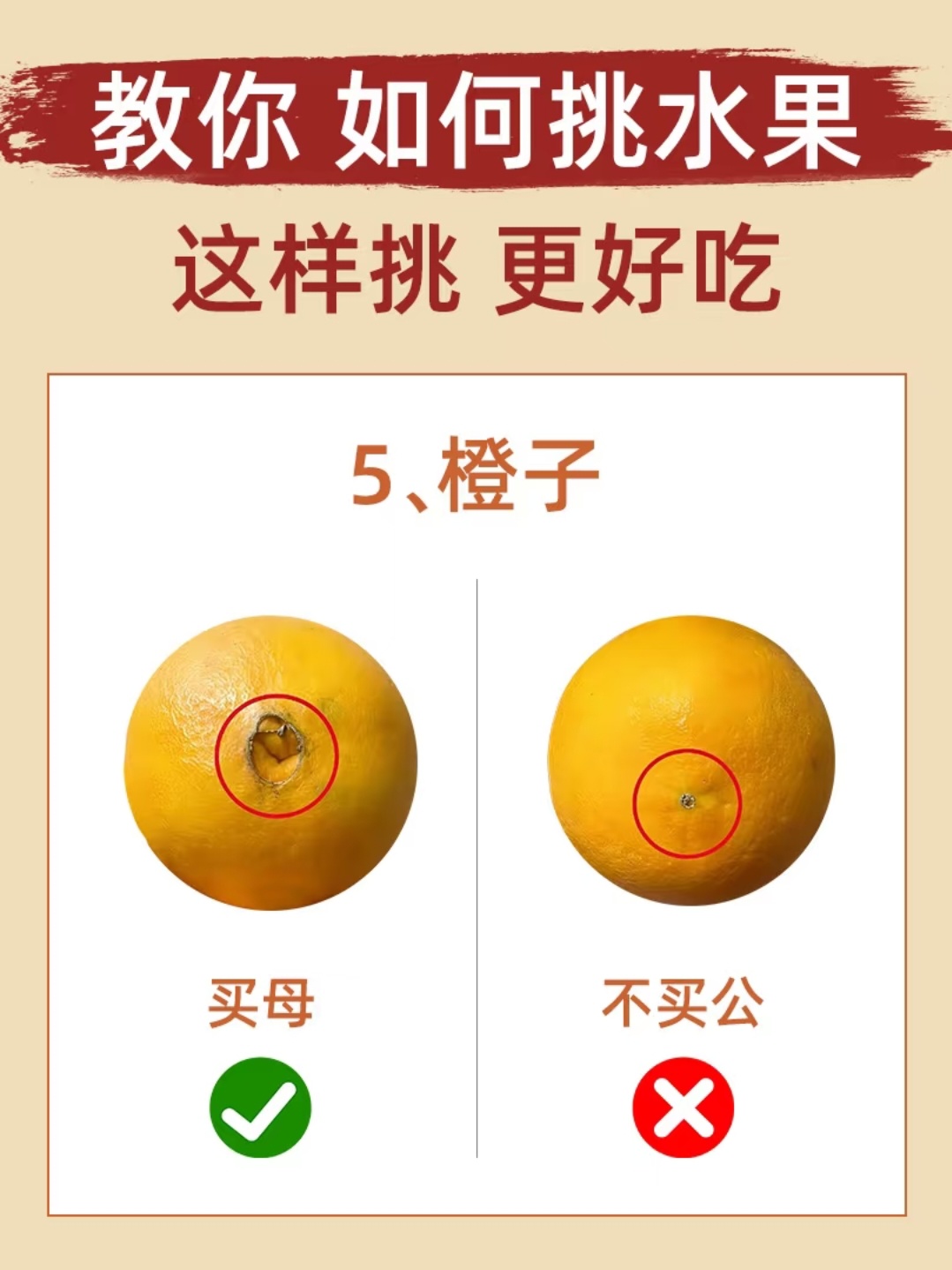 橙子(我最喜欢吃):认“母橙”——底部带小坑的,“公橙”(小点点底)甜度差一截;