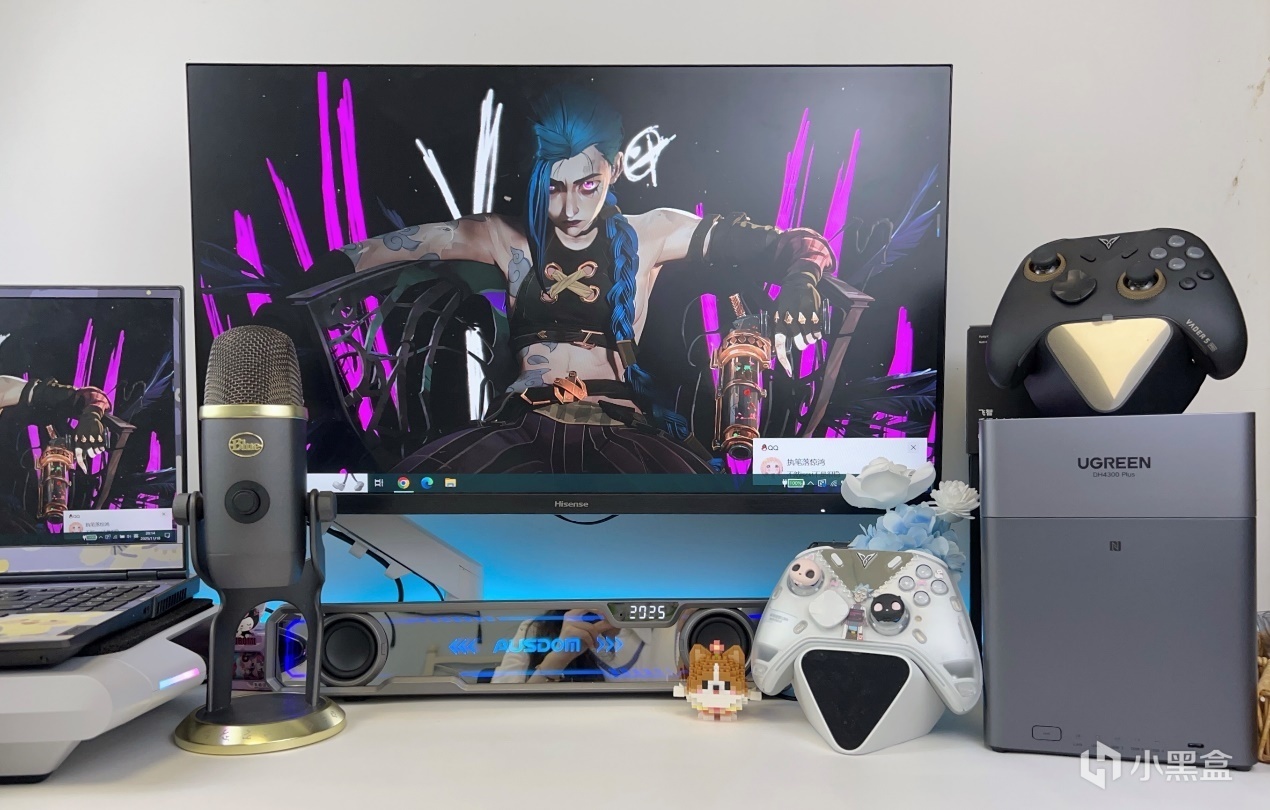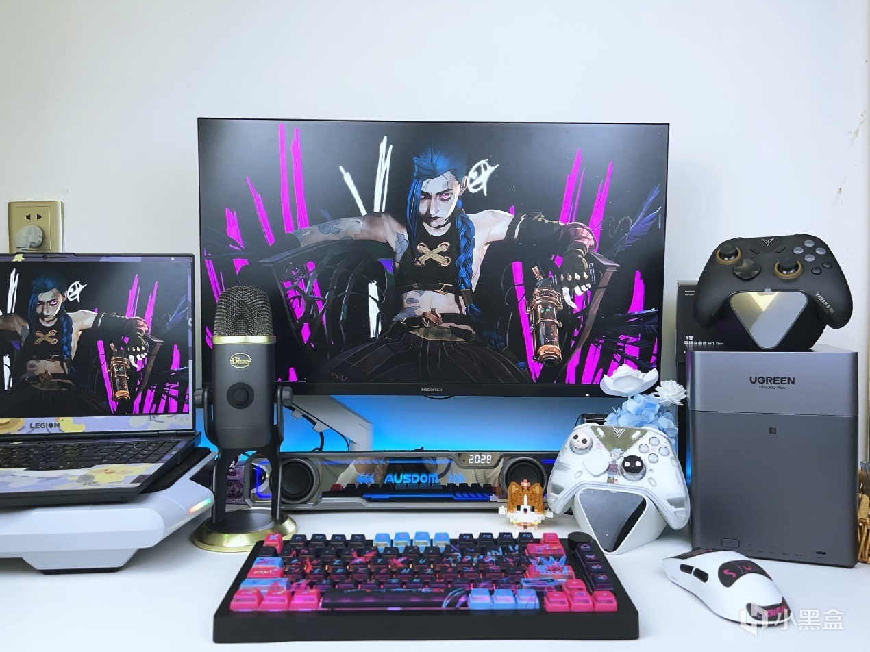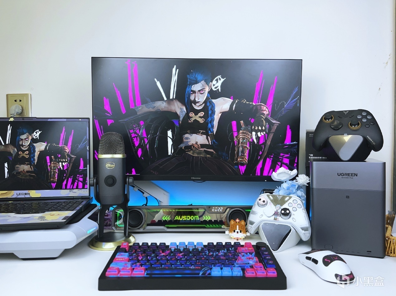 对女生来说,数码产品的颜值非常重要,绿联整体为磨砂灰,虽然是长方形但并不会显得很笨重,放在电脑桌的角落,和旁边的香薰、手柄摆在一起,让桌面显得更加高级。