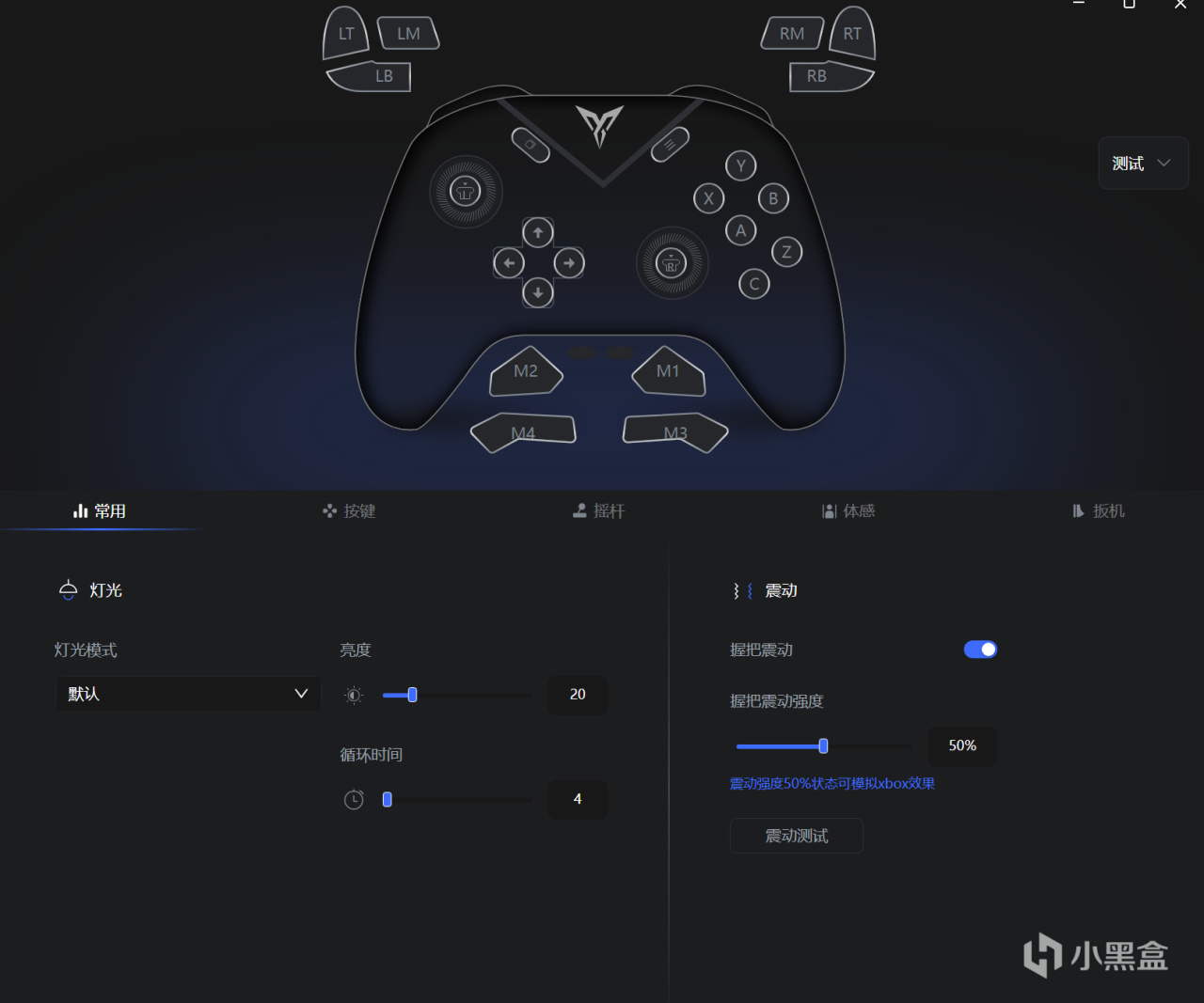 通过飞智空间站4.0,玩家可以在这里更加直观得调节黑武士5Pro的按键、摇杆灵敏度、扳机线程、握把震动、体感等功能,甚至手柄和底座的灯效可以同步。这不是“能调”,这是“调到你满意为止”。