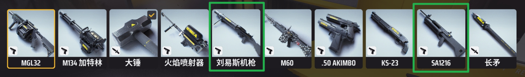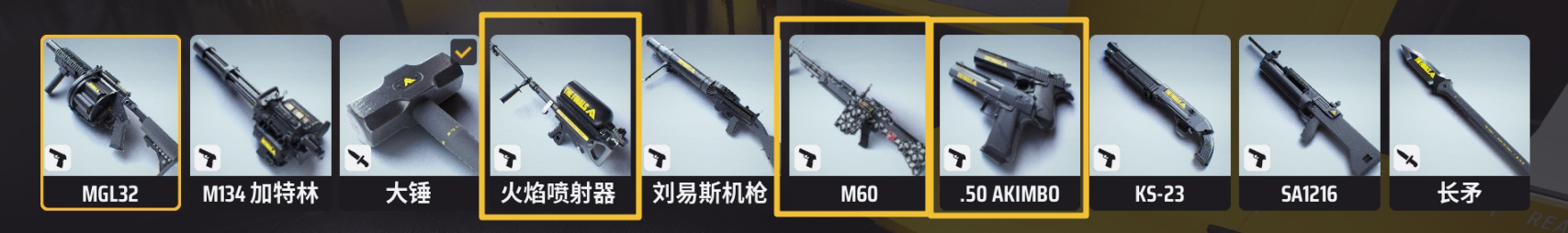 手枪、M60、喷火器,大锤,属于都还不错的