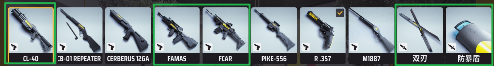 最猛的是重型步枪FCAR——虽然削过,但对新手来说依然很强。