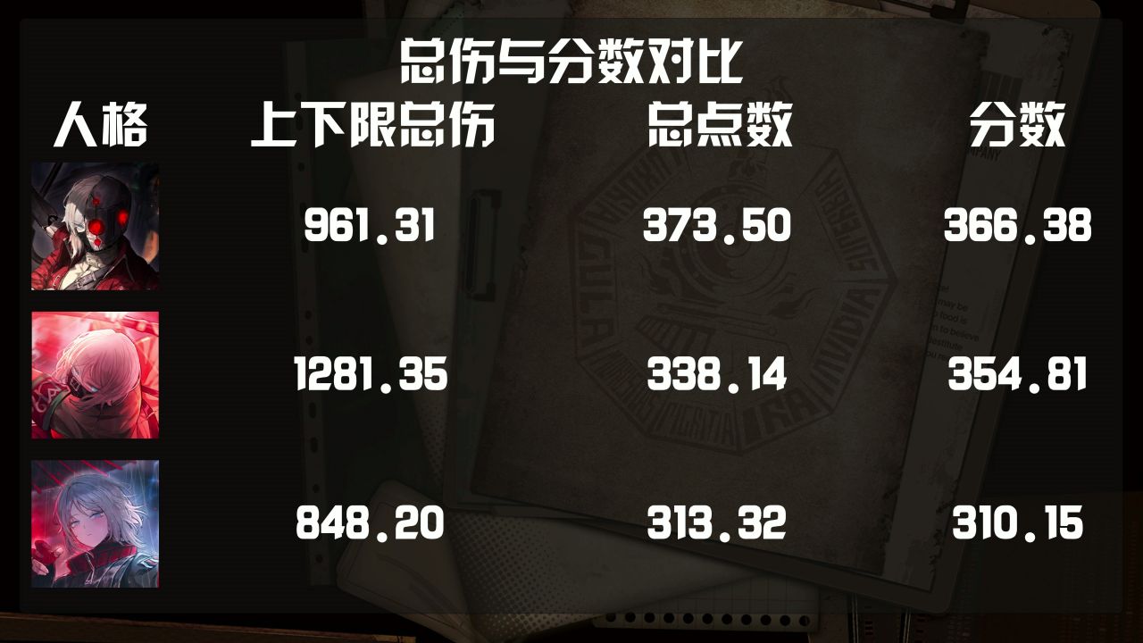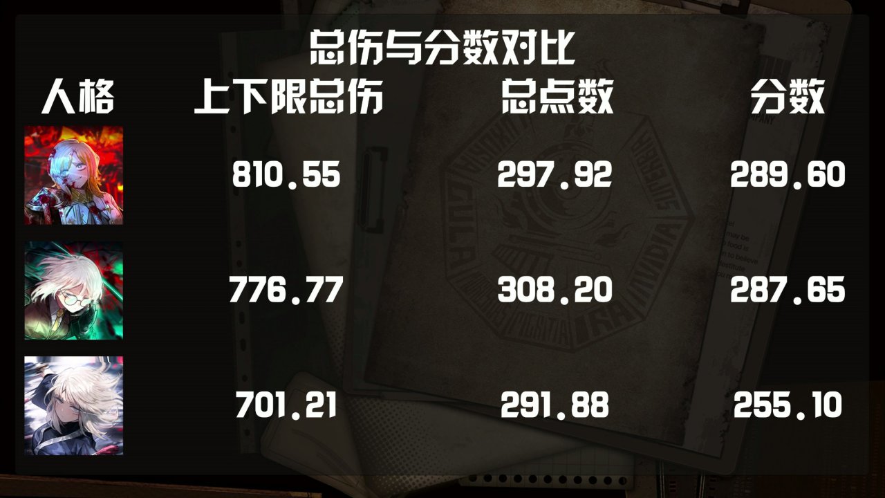 本文章规则主要模拟牢外菜刀队的三灯人格的情况,展示在一定规则下12回合循环的上下限点数伤害、分数排名与玩法建议。