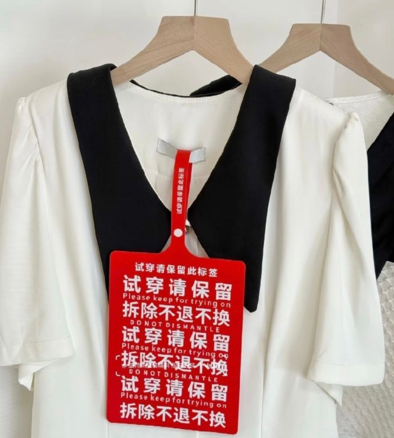 爲應對“穿完就退”的惡意退貨行爲,商家紛紛祭出“巨型吊牌”法寶。這些吊牌大如A4紙,採用硬紙殼或塑料製成,懸掛在衣物醒目位置,有的甚至直接在拉鍊上掛密碼鎖,消費者確認收貨後方能獲知密碼。