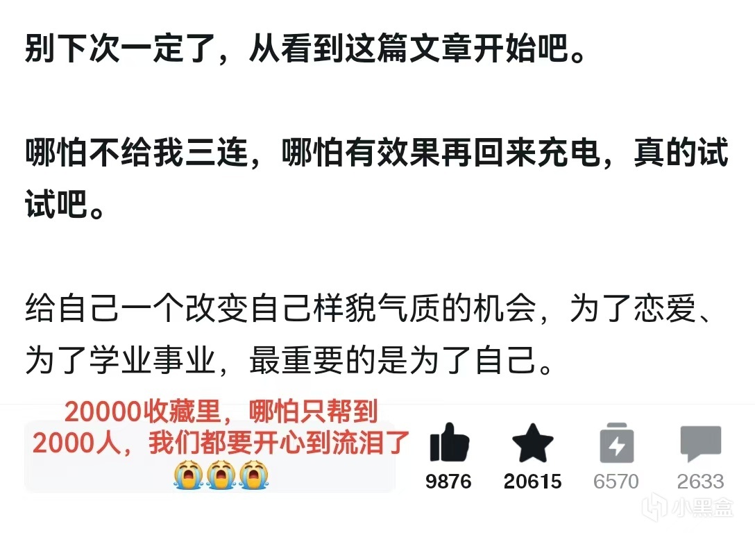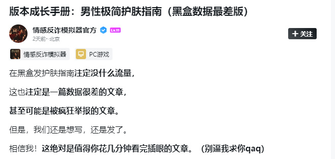 说实话,每次在小黑盒写文章的时候,我们都是满心的忐忑——这篇文章大家会喜欢吗?真的能帮到大家吗?我们怎么写大家才愿意看下去?拿前两天护肤的文章举例,现在是互联网时代,各个社媒平台关于护肤的教程已经铺天盖地了,所以我只有把步骤简化再简化,语气轻松再轻松,才敢努力让对护肤有畏惧或抵触心理的兄弟们继续往下看。