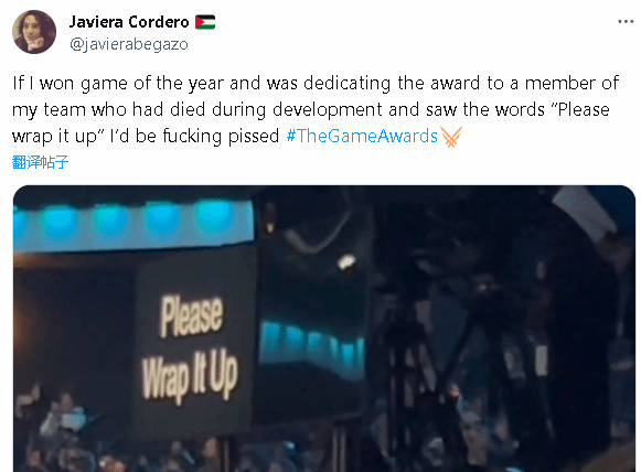 这和当年放《双人成行》的制作人上台去喊“**** the Oscars”,再让他在第二年拿到“年度游戏”是相类似的,代表着TGA非常希望成为游戏业界的表率角色。不说有没有实际效果,在许多欧美从业者以及玩家眼里,至少也算出了口气。