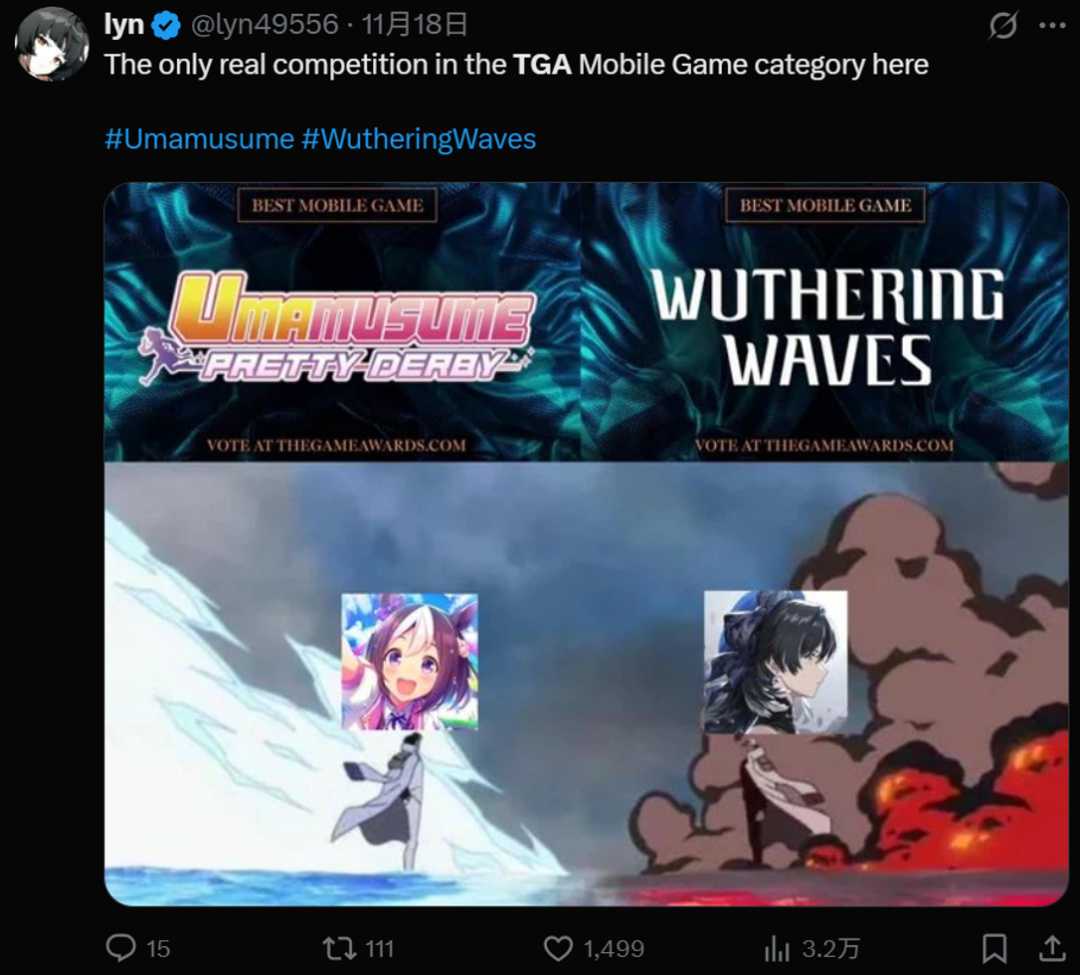 典型如《赛马娘》,在日本都已经运营4年了,因为今年推出国际服,才被选入到“最佳移动游戏”提名