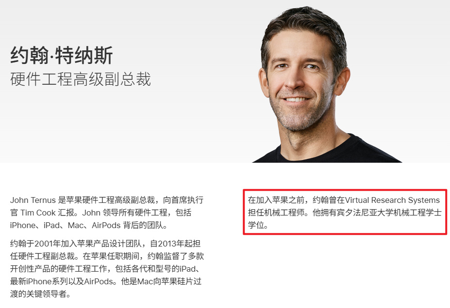 这位宾夕法尼亚大学机械工程出身的老哥,早在 2001 年就加入了苹果,而且在加入苹果之前,他甚至在一家非常古早的 VR 公司 Virtual Research Systems 当过机械工程师。。。