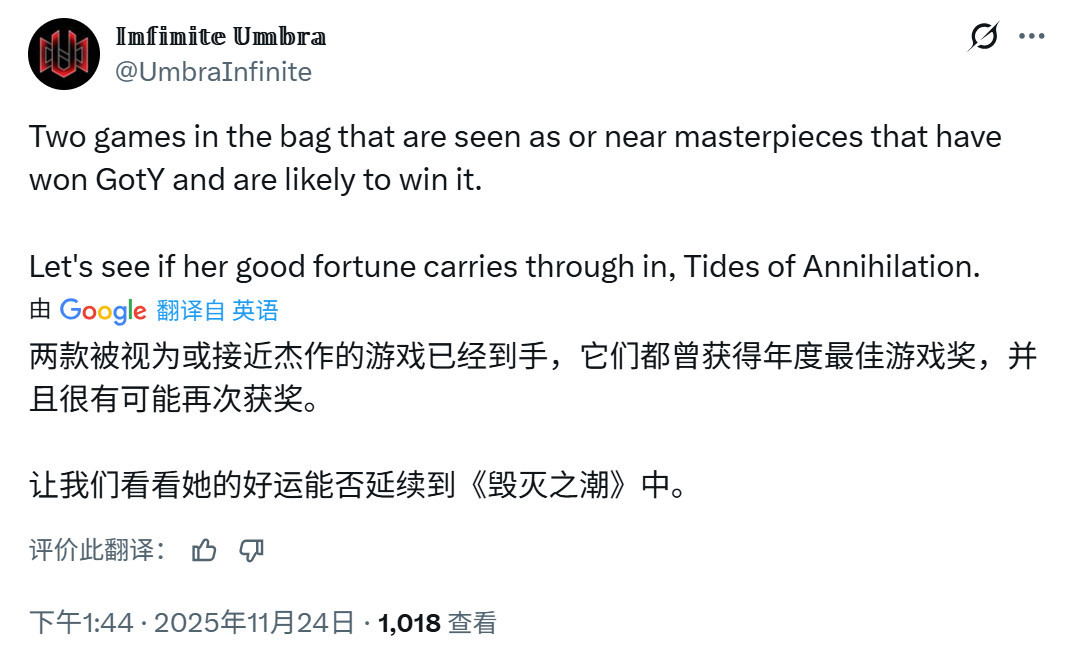 詹妮弗近期在《光與影:33號遠征隊》中飾演的“梅爾”助力該作斬獲2025年金搖桿獎年度遊戲。連續三部由其參與的作品均獲得年度遊戲稱號,海外玩家社區將她視爲“年度遊戲吉祥物”。這一巧合爲《湮滅之潮》的期待值增添看點。國外網友對此選情紛紛表示,“有她配音的遊戲都會大賣”、“任何有詹妮弗配音的遊戲都會自動獲得年度最佳”。《湮滅之潮》在此前公佈的實機預告中,其華麗的技能演出與高強度戰鬥表現已引發全球玩家熱議。