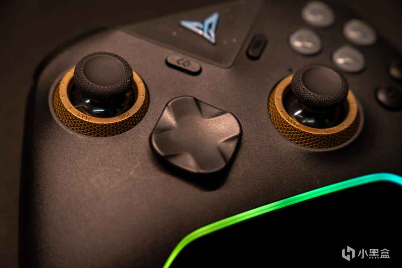 十字键与摇杆可以说是彻底是 ntr 了,都是 85 同款配置,而且还保留了黑武士的特色阻尼调节环。新一代的转轴十字键 2.0搓起来清脆不误触,打格斗游戏随便拿捏,最新的摇杆力调节阻尼和上代一样,但是延迟进一步降低到了 4ms,这下打游戏打不过没有理由了吧。