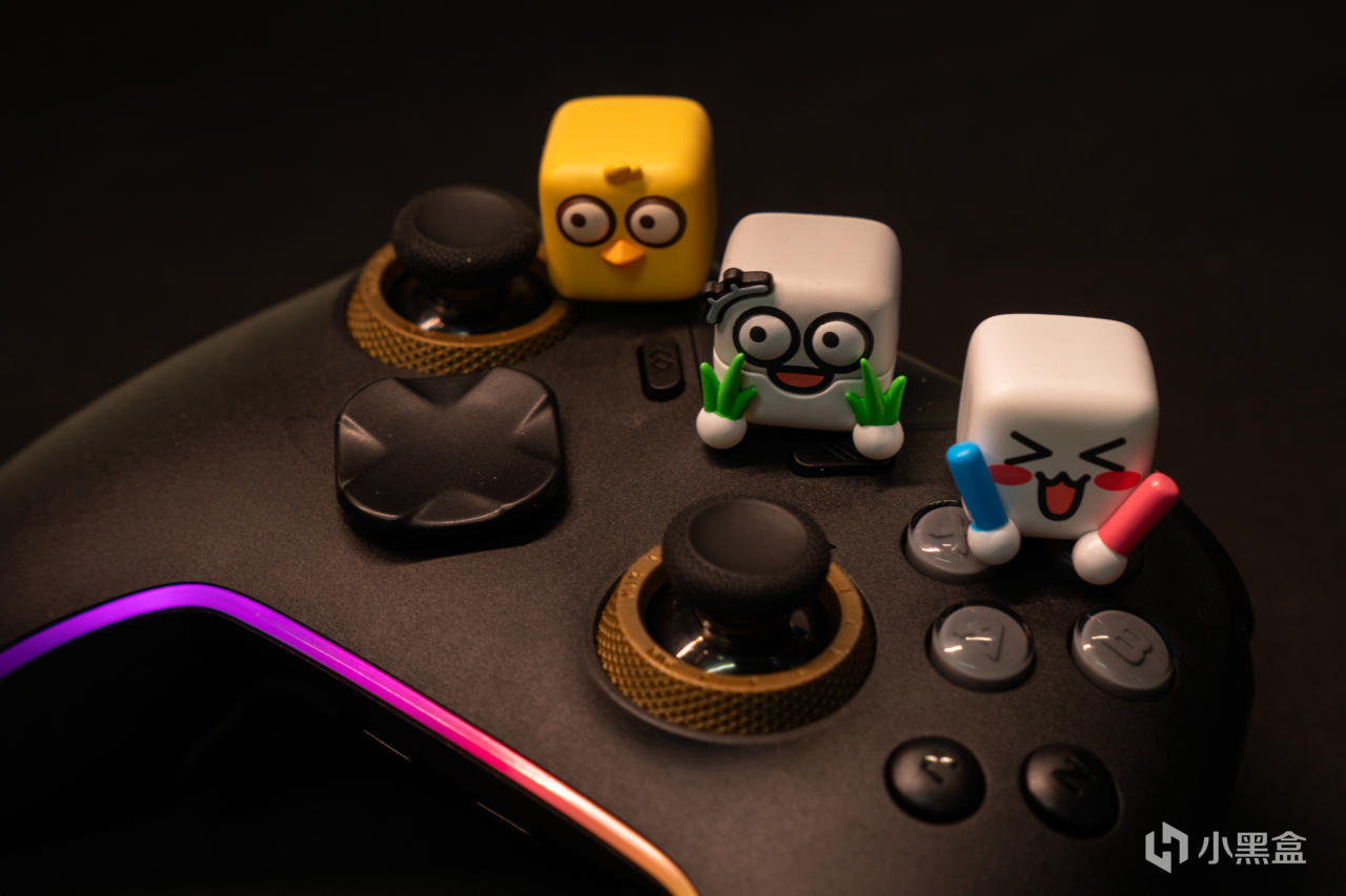 甚至是替换摇杆帽、替换十字键都完全通用,我手上没有 545 的专属配件包,直接拿着 85 的配件包就上了,毫无违和感,并且 85 的是白灰色配件,换上后和黑武士这个浅灰色 ABXY 居然还挺搭?
