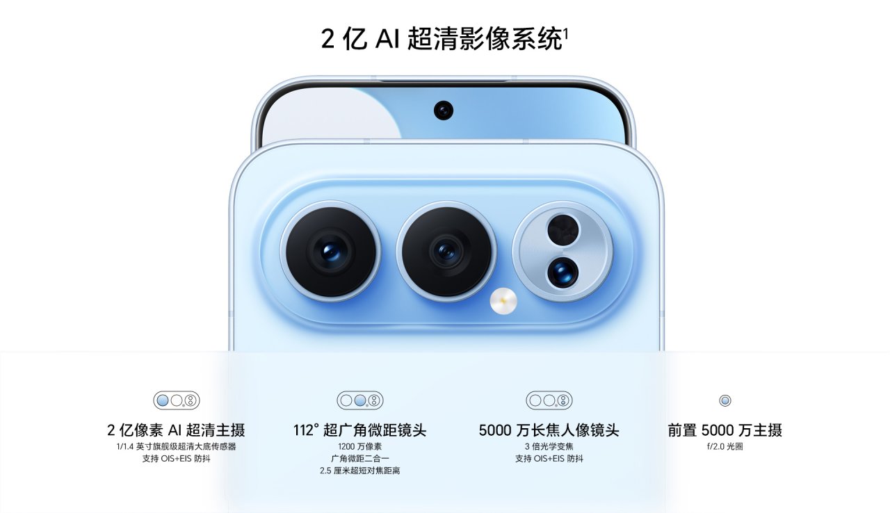 • 主攝:200MP 1/1.4" 三星HP3, ƒ/1.9,支持OIS;