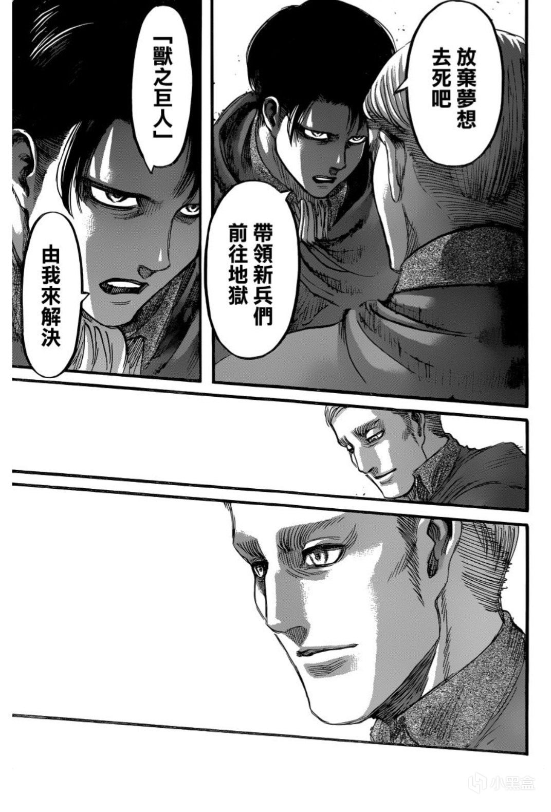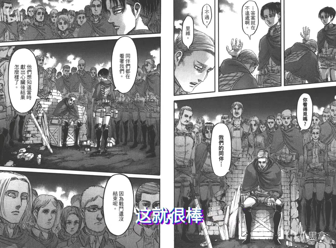 而整個世界,除了利威爾,不再有人知道團長的私心是什麼。他的英雄形象會一直流傳下去。這讓我不得不讚嘆,進擊的巨人對艾爾文和利威爾之間友誼的塑造真的是非常有質感,令人動容。