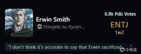 從文藝創作的視角上看,艾爾文是一個教科書級的ENTJ角色範本。他身上 Te–Fi 的欲力結構讓人物顯得非常有張力。不是無私的聖人,但堪稱一個盡責的團長,人類的英雄。另一個經典的ENTJ案例,夜神月,則是表面上公正無私,而實際上被內心深處失控的Fi所吞噬的案例。