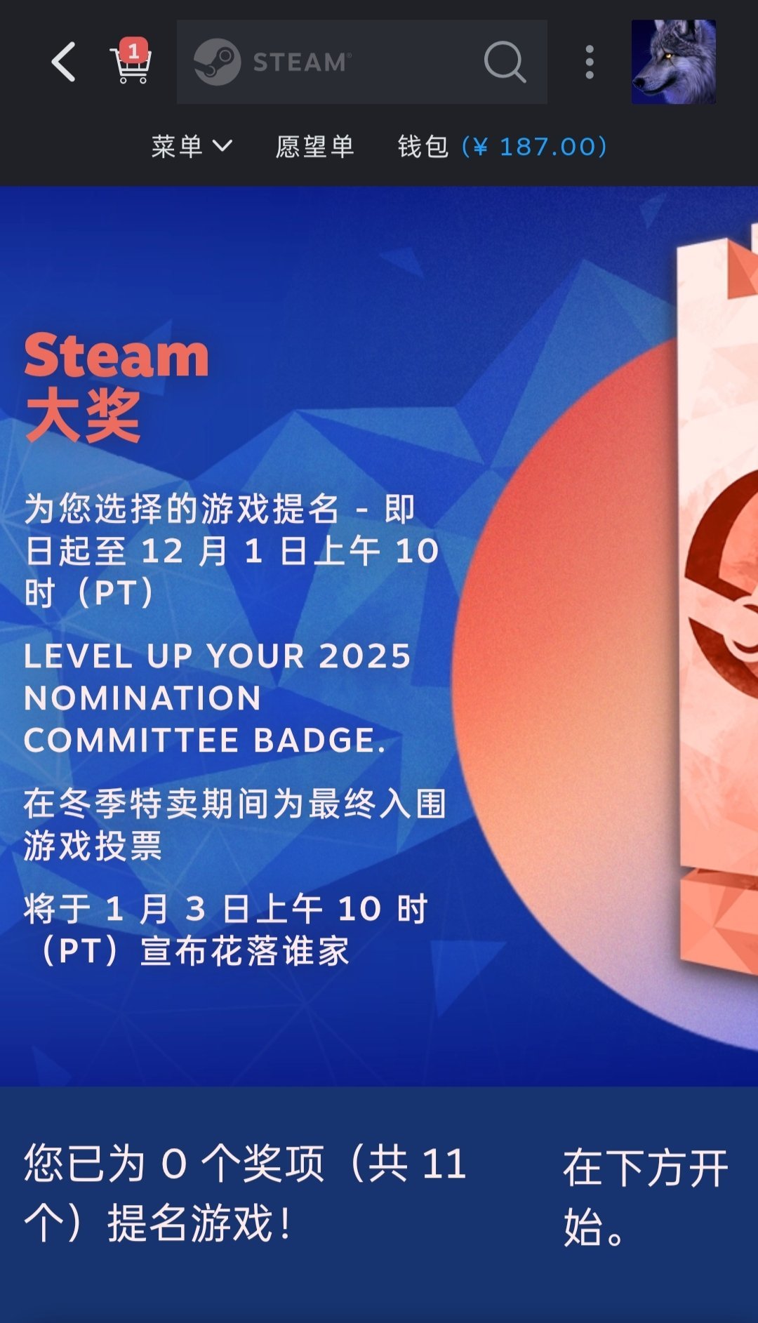 首先打开steam,往下拉一点可以看到这个为您最爱的游戏提名活动,点击一下进去