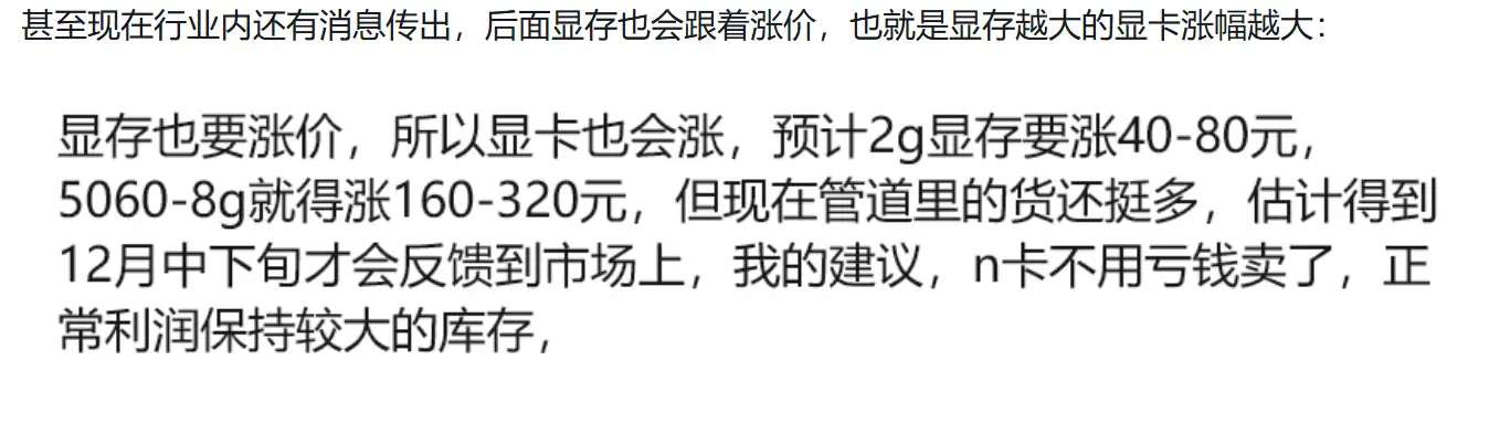 之前文章裏曾一帶而過,因爲顯存產能不夠,顯卡也會漲,當時預計反饋到市場行情上,要等到年末,最晚明年第一季度