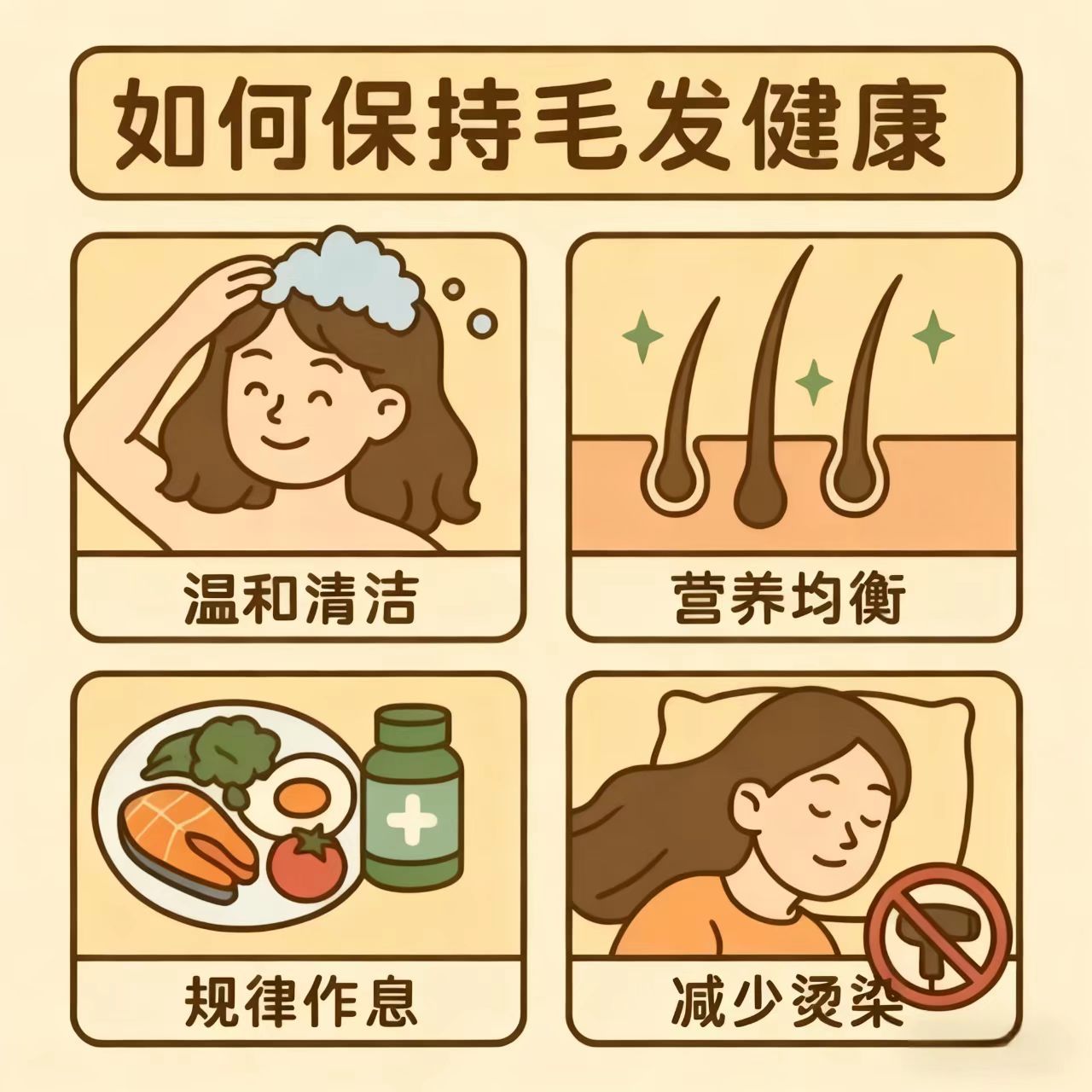 头发:避免湿发时暴力梳头;吹风机用中低档温度,减少烫染频率。