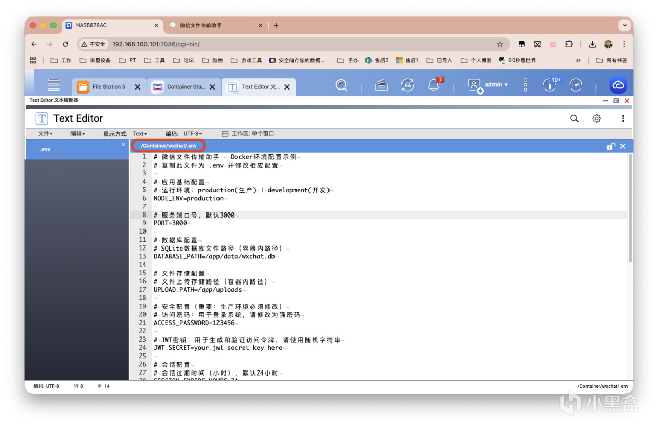 首先準備一個.env環境變量配置文件,放於Docker目錄下,我的路徑爲/share/Container/wxchat