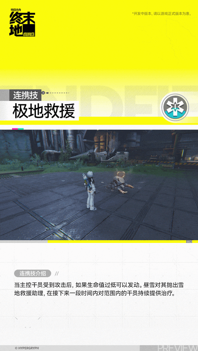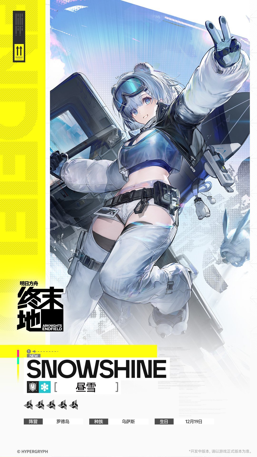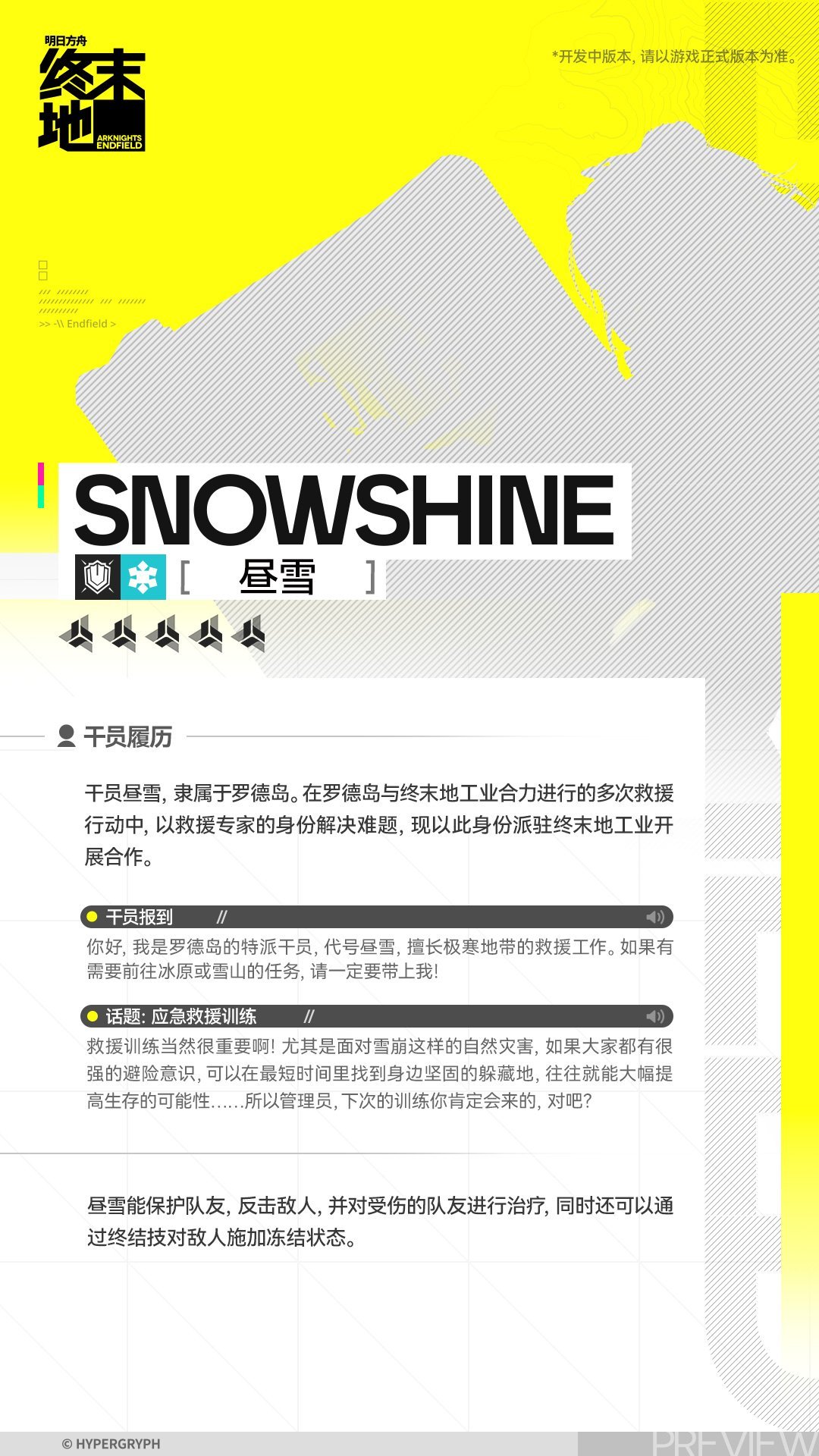 昼雪来自罗德岛,以救援专家的身份为终末地工业提供服务。
