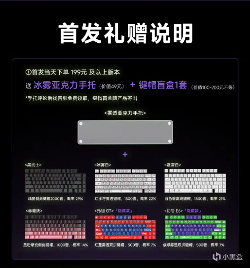 如果你是首發的版本,那毋庸置疑地得到了性價比。而沒搶到也沒關係,今晚25日的八點補貨依舊還有贈送手託 + 鍵帽盲盒,曬單還能再領1盒悶軸。