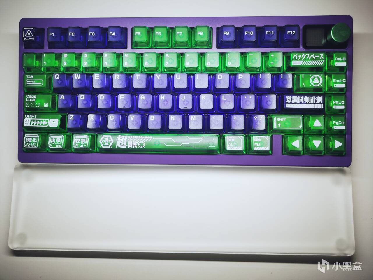 打開第一眼看到初號機配色就覺得很有主題感,EVA 標誌性的紫綠撞色搭 75 配列