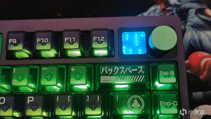 音樂律動正如上文所述的效果,可以通過調控切換鍵盤的RGB燈效,鍵盤燈光就會跟着你播放的音樂節奏閃動,識別到音樂細節時,鍵盤右上角的點陣屏也會同步變化圖案。
