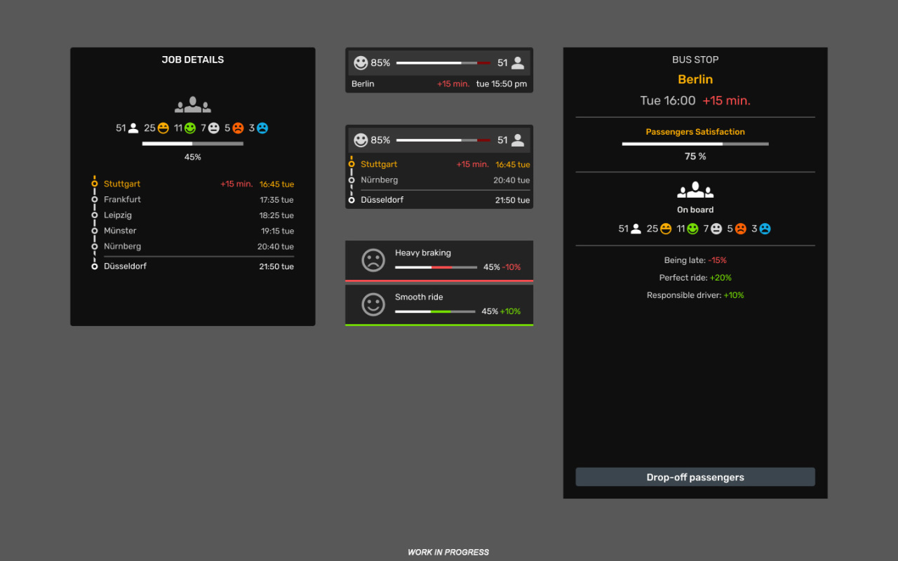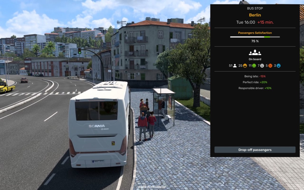 我们希望你喜欢这次关于即将推出的客车模块中“乘客满意度”系统的幕后分享。未来我们还会介绍更多关于这个全新玩法的内容。如果你期待体验客车驾驶,记得把它加入 Steam 愿望单,这对我们的后续开发真的很有帮助。