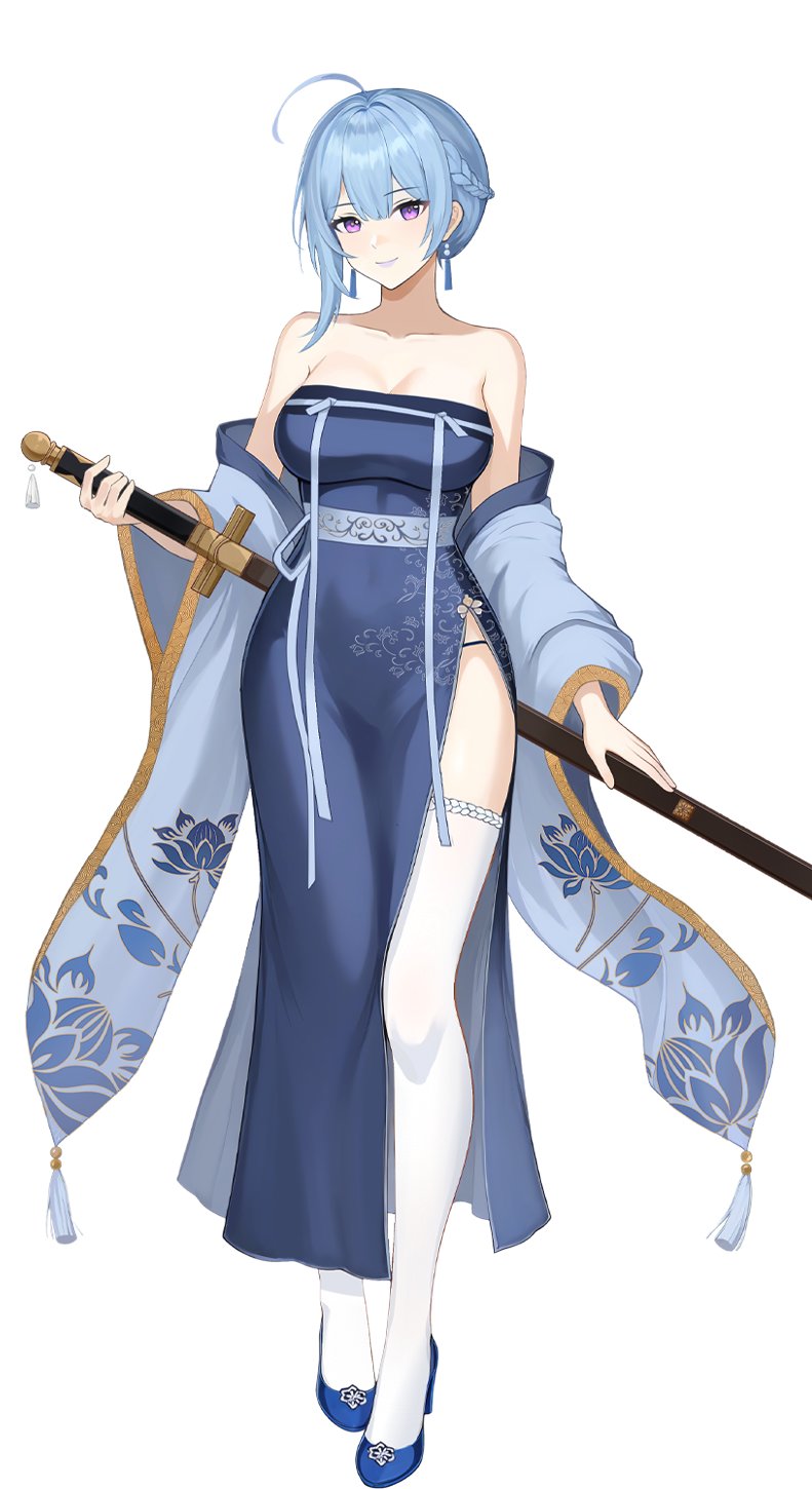 首先是寒玉仙姑和她的弟子漓烟可以注意到配色是相似而互相衬应的,寒玉仙姑成熟妖媚,精于世故,所以选用了浅蓝+嵌边白袜的设计,辅以飘带作为动态装饰物来体现她的外扬和娇美。