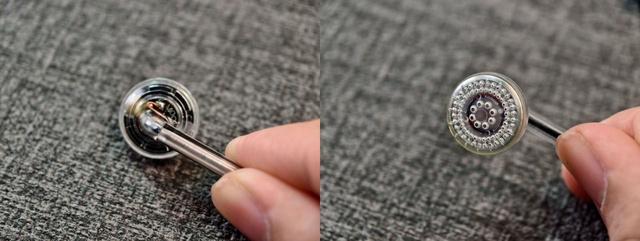 塞子本身是透明壳体,能直接看到单元和焊点,内部做工在这价位没毛病,甚至还有个印刷质量挺在线的水月雨logo,牌子不能掉份儿!