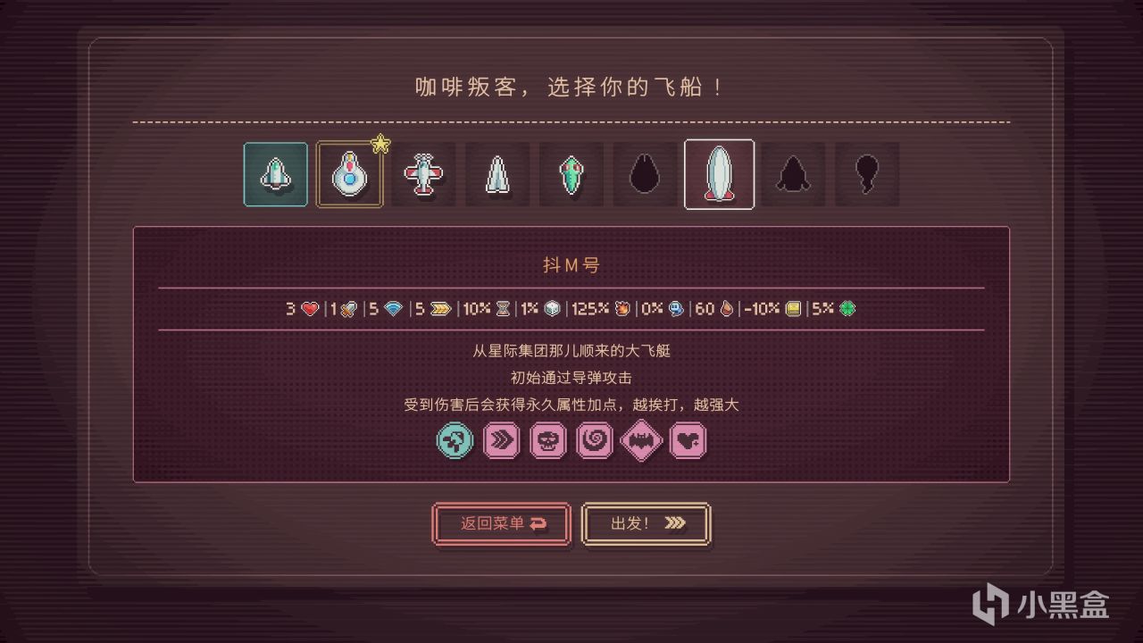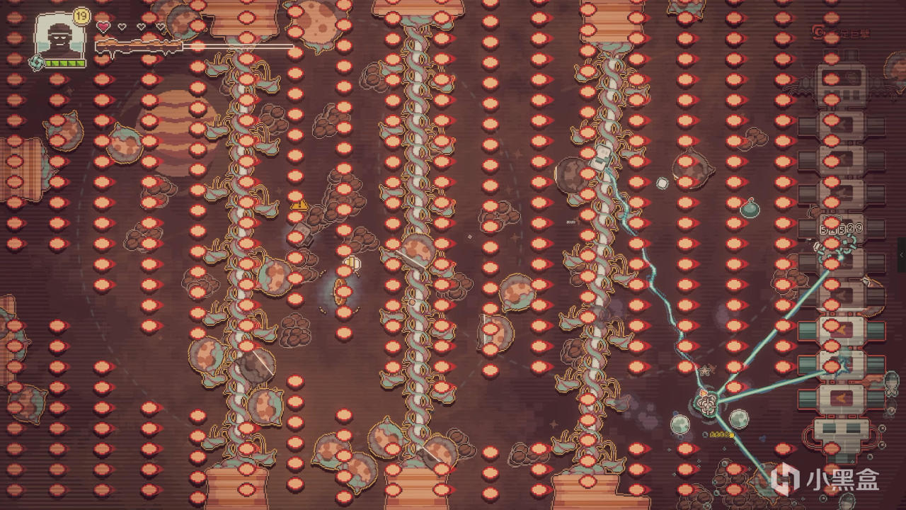 在游戏所构造的未来世界中,咖啡豆成为了最珍贵的资源。作为一名咖啡豆矿工,玩家需要驾驶“矿机“,在快节奏的每轮进程中躲避弹幕,通过破坏星球和敌人来获取一系列资源,然后消耗资源点局外成长,继续下一轮,从而达成简单又上头的玩法循环。