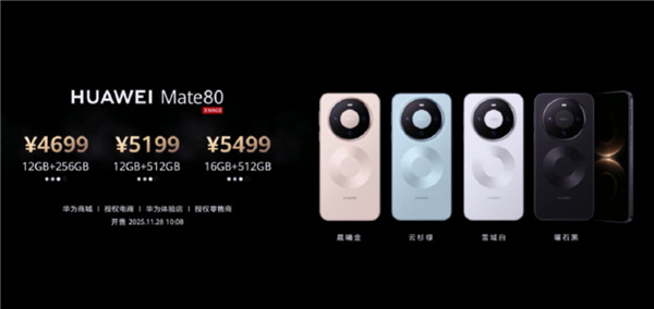 此外,Mate 80 Pro價格,12+256GB 5999起(比上一代便宜了500元);Mate80 Pro Max價格,16+512GB 7999起;Mate80 RS價格,20+512GB 11999起。