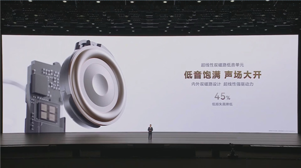 硬件方面,耳机芯片也升级为了麒麟 A3,发声单元也改为了超薄微平板高音单元+超线性双磁路低音单元。