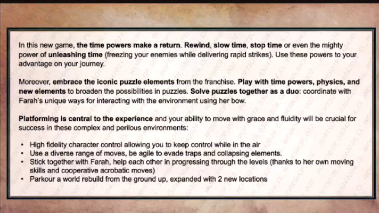 育碧《波斯王子:时之沙》重制版的早期提案与开发画面近日疑似遭泄露。该泄露内容包含面向焦点小组的演示资料,短暂现身YouTube后即因DMCA下架要求被删除(备份镜像仍存)。资料含早期动作捕捉测试、Alpha版粗糙实机画面、概念图及叙事框架幻灯片,视频标注日期为2024年3月4日,推测为约两年前的开发素材。