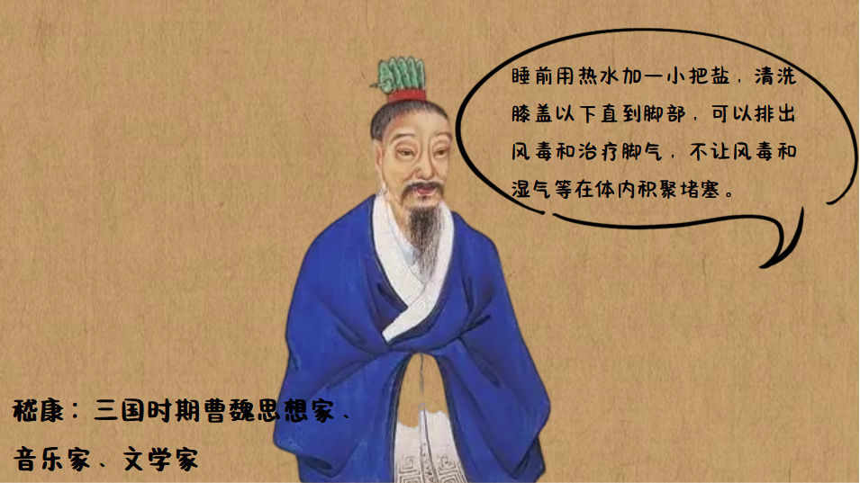 三国时期的曹操虽戎马一生,却坚持“日沐足一次”,他认为军旅中久坐久站,唯有清洁双脚才能保持行军活力;