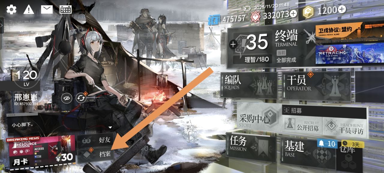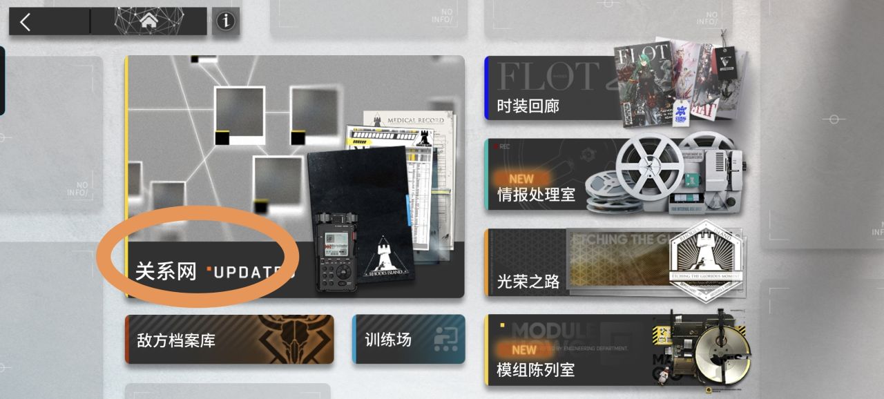 ①进入主页,依次点击【档案】→【关系网】即可在里面找到大量的人物档案,有些角色未实装也有资料记录,比如陈的舅妈,魏彦吾的妻子文月公主的档案;还有一些卡池抽不到的精英干员的档案也包括在内。